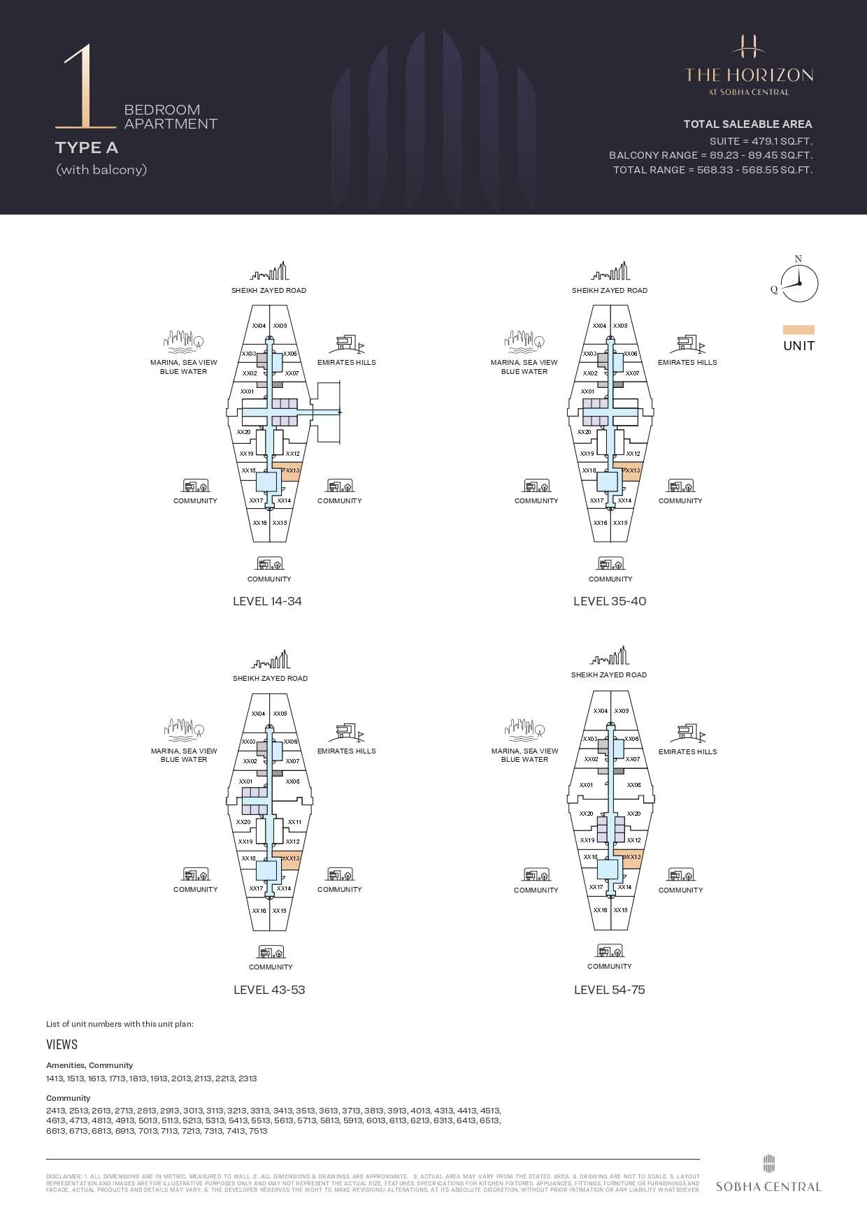 Typical Floor Plan | - | LEVEL 14-75 TYPE A | 568.55 Sq Ft | Apartment |