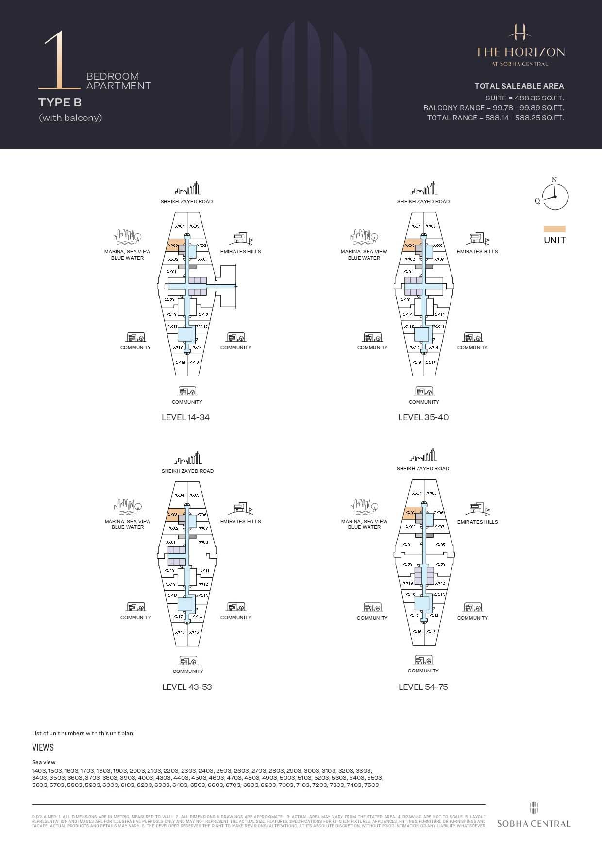 Typical Floor Plan | - | LEVEL 14-75 TYPE B | 588.25 Sq Ft | Apartment |