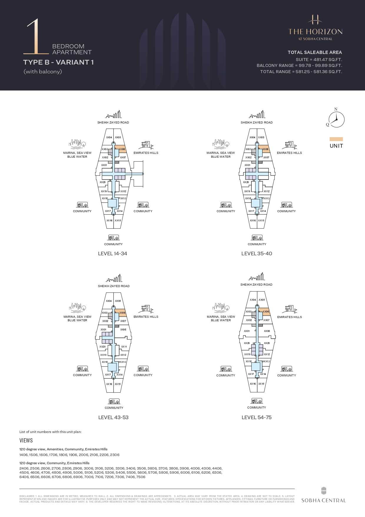 Typical Floor Plan | - | LEVEL 14-75 TYPE B-VIRIANT 1 | 581.36 Sq Ft | Apartment |