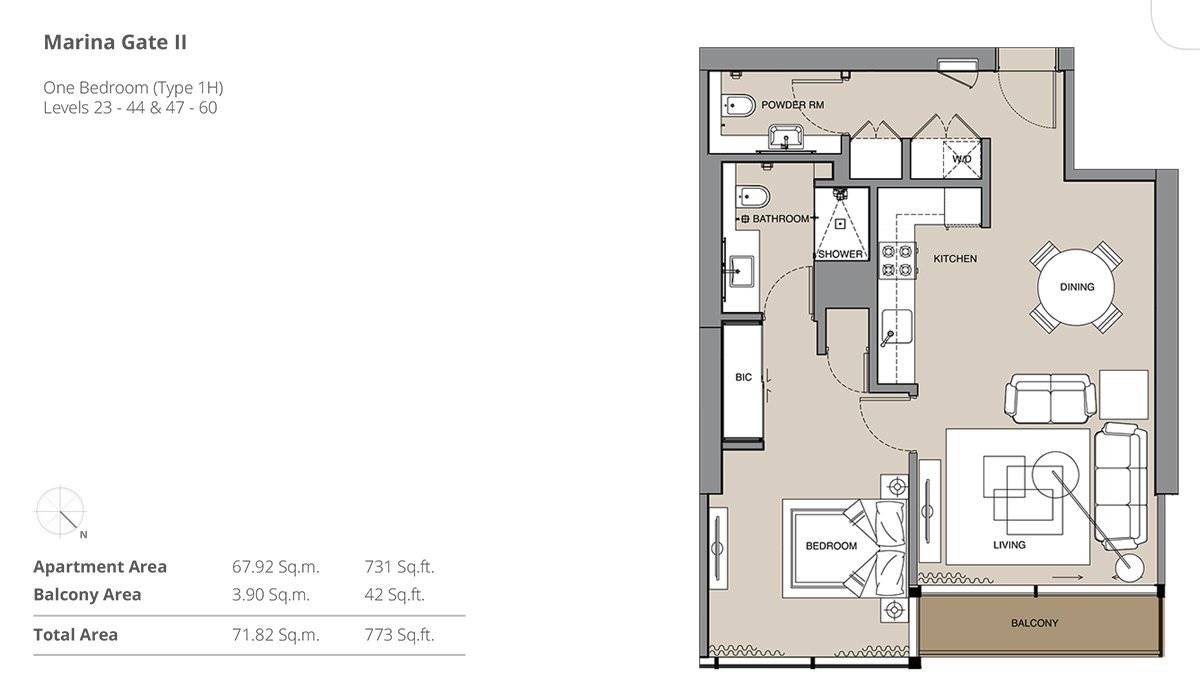Marina Gate 2 - 1-Bed-type-1h 773.00 Sq Ft Apartment