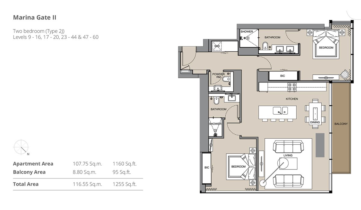 Marina Gate 2 - 2-Bed-type-2-j 1255.00 Sq Ft Apartment