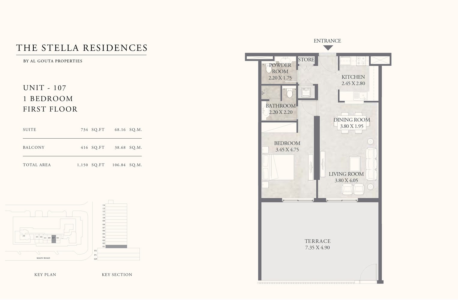 1 Bedroom | - | Unit 107 | 1150.00 Sq Ft | Apartment |
