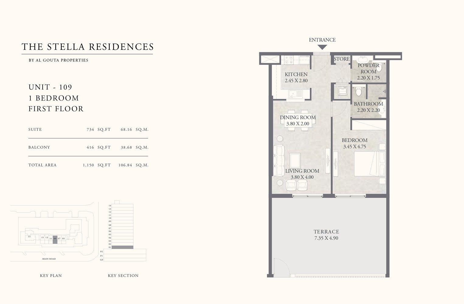 1 Bedroom | - | Unit 109 | 1150.00 Sq Ft | Apartment |