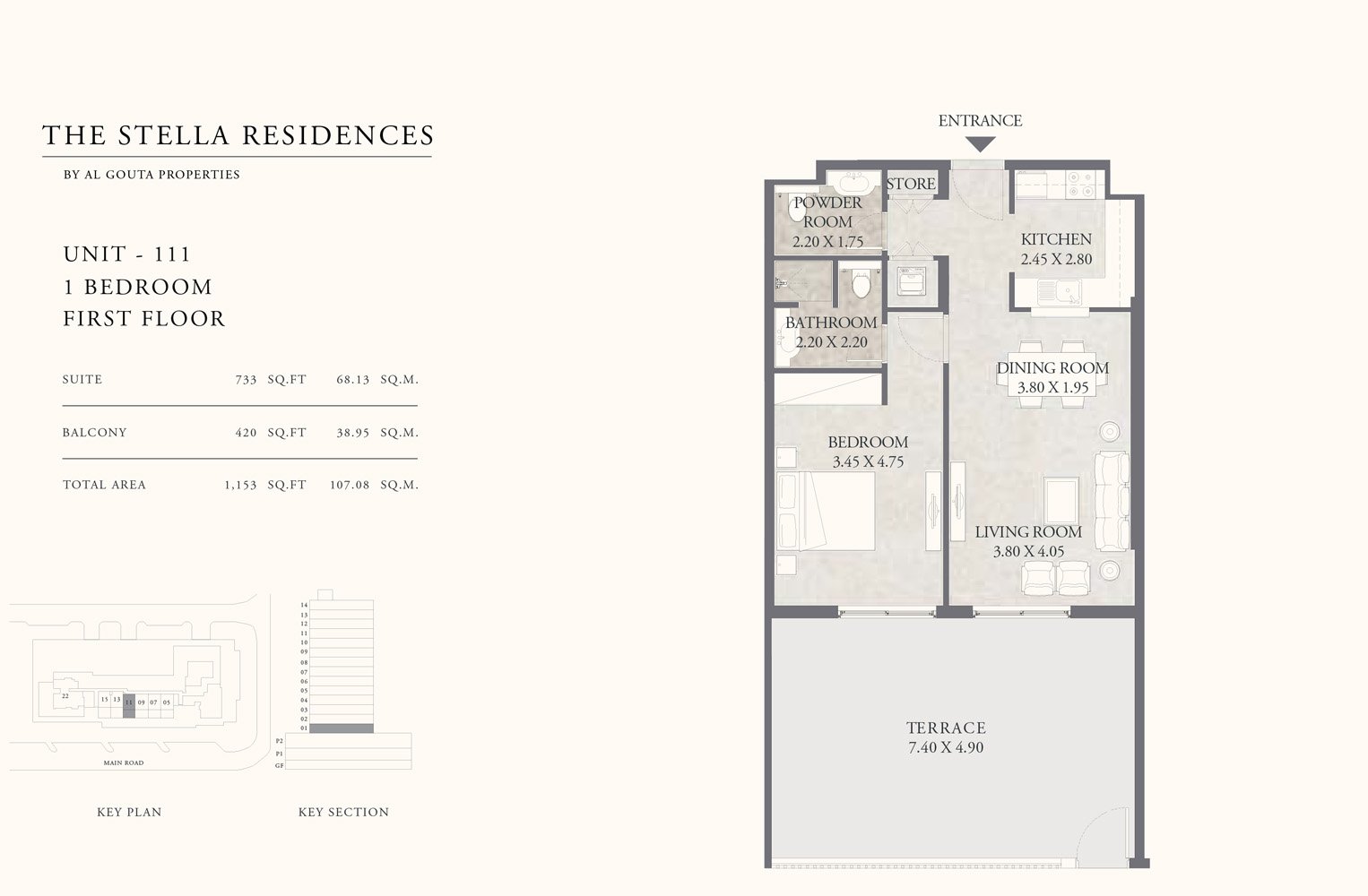 1 Bedroom | - | Unit 111 | 1153.00 Sq Ft | Apartment |