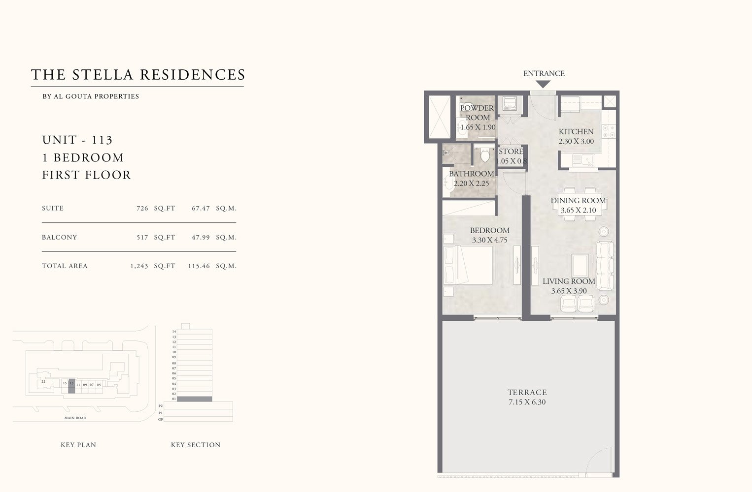 1 Bedroom | - | Unit 113 | 1243.00 Sq Ft | Apartment |