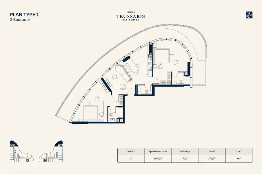Unit Plan | - | TYPE 1 | 176.77 Sq Mtr | Apartment |