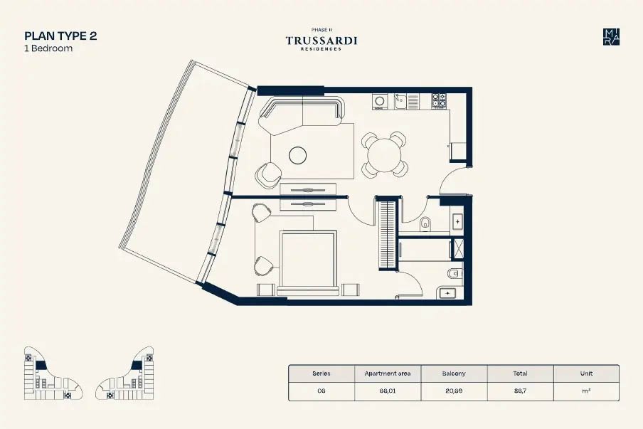 Unit Plan | - | TYPE 2 | 86.70 Sq Mtr | Apartment |