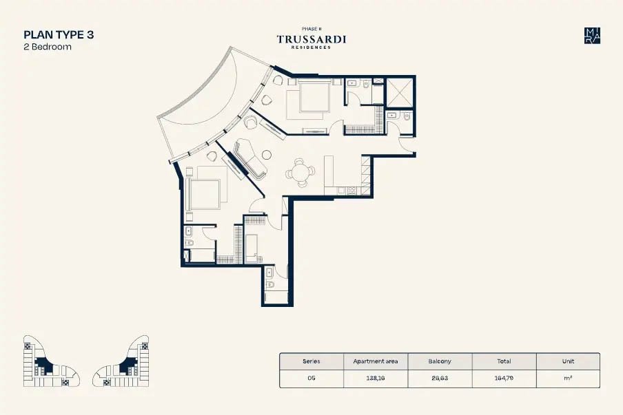 Unit Plan | - | TYPE 3 | 164.79 Sq Mtr | Apartment |