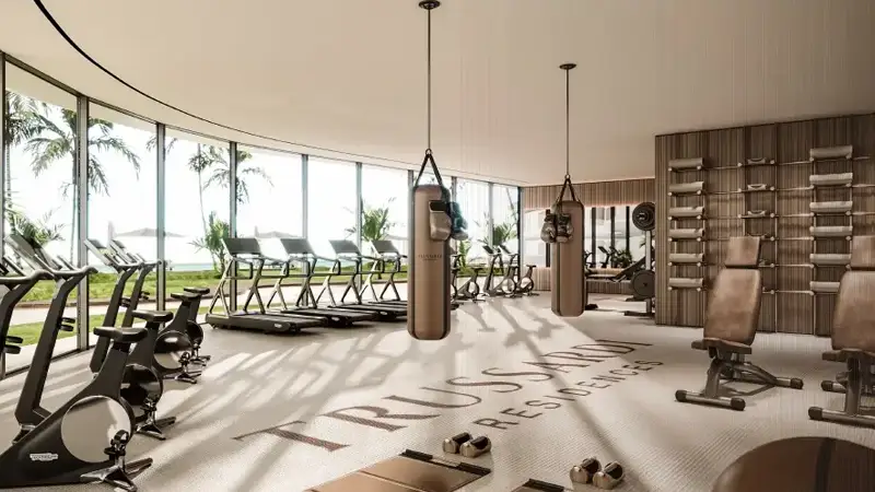 Trussardi Residences 2 at Al Furjan represents the second opulent waterfront development by the renowned Mira Developments, offering an exquisite blend of Italian elegance through its 1 and 2-bedroom apartments. Drawing inspiration from Dubai’s vibrant lifestyle, this residential masterpiece sets new standards in luxury living with its contemporary design infused with Milanese style. The Dubai neighborhood is distinguished by its unique façade, which provides exceptional lifestyle options through premium facilities, sophisticated interiors, and direct access to key city centers. The building features an elegant eleven-story structure with a three-floor podium, showcasing Italian construction techniques that are evident in every design element. The carefully curated premium furnishings reflect a unique design philosophy, creating an ambiance of luxurious sophistication throughout the spaces. Italian craftsmanship enhances the building's modern global design, infusing it with artistry and style. Each unit is thoughtfully designed to maximize natural light and offer residents serene living spaces with expansive city views. Homeownership here embraces an elevated lifestyle through outstanding luxury services and a seamless living experience. A standout aspect of this development is its exceptional array of high-end amenities tailored to enhance the overall lifestyle. Residents can start their day with laps on the rooftop jogging terrace surrounded by lush greenery, followed by a refreshing swim in the 26-meter infinity pool, complete with cabanas and beverage service. This development introduces private terrace pools to the Al Furjan community, providing an unparalleled level of luxury and privacy. Fitness enthusiasts will appreciate the state-of-the-art gym facilities, while professionals can utilize functional workspaces available in the lobby. Personalized services, including a butler program, valet parking, and concierge services, ensure that residents enjoy indulgent experiences, complemented by visits to beauty studios and the spa.