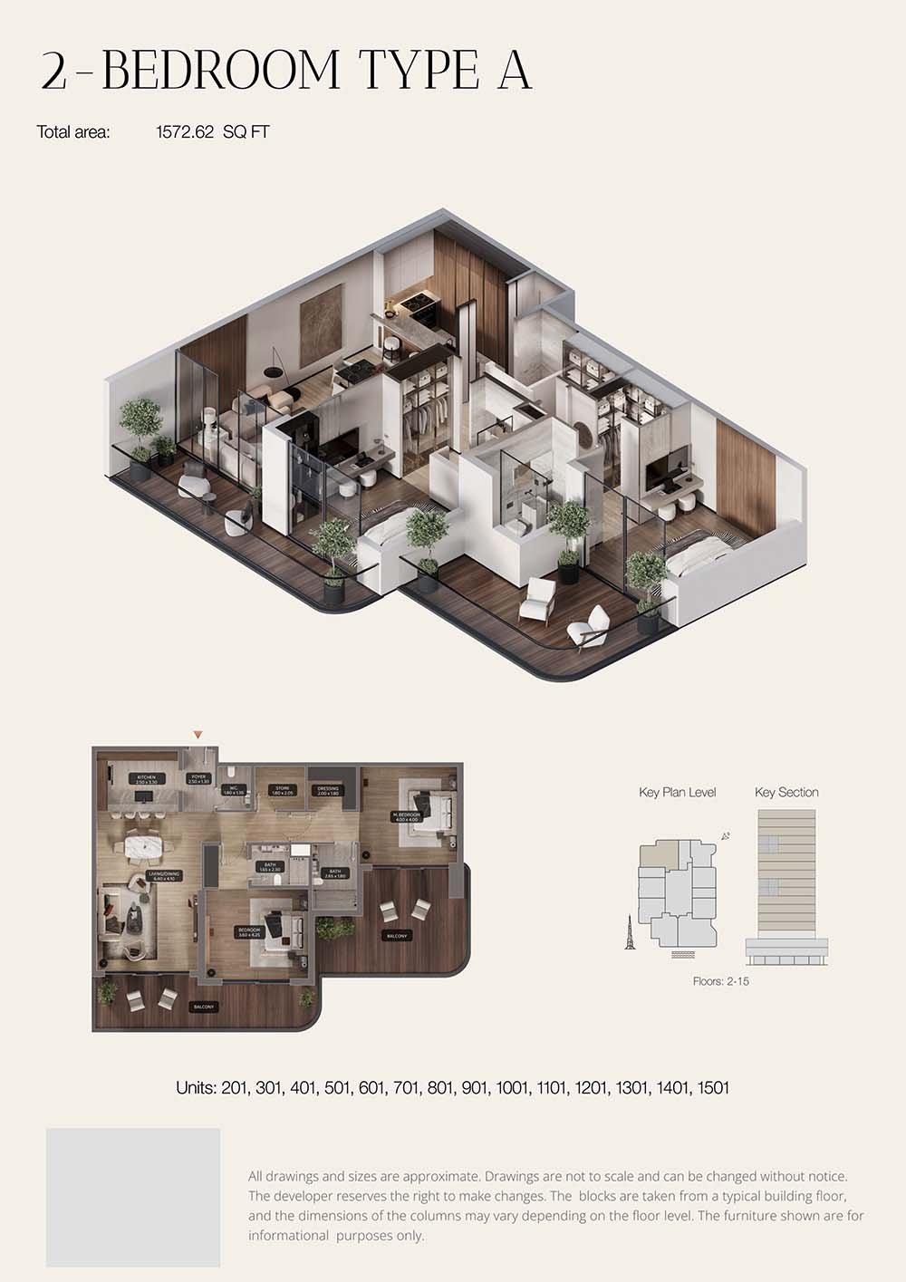 Floor 2-15 | - | Unit 201-1501 (Type A) | 1572.62 Sq Ft | Apartment |