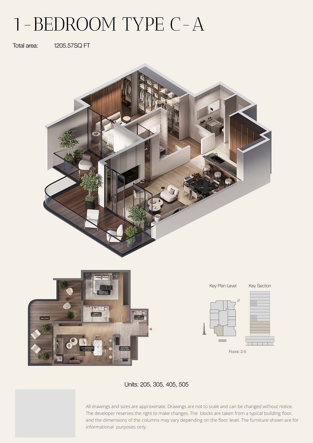 Floor 2-5 | - | Unit 205-505 (Type C-A) | 1205.57 Sq Ft | Apartment |