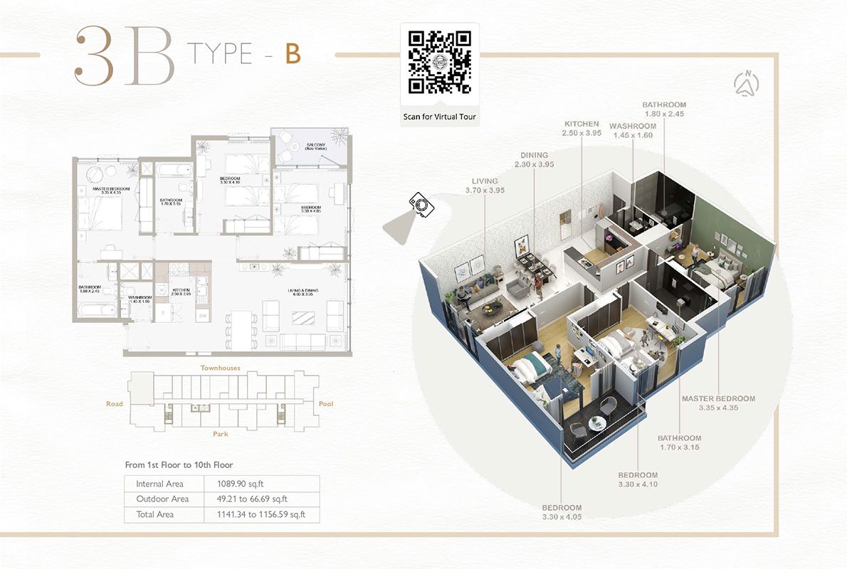 3 Bedroom | - | Type B | 1156.59 Sq Ft | Apartment |
