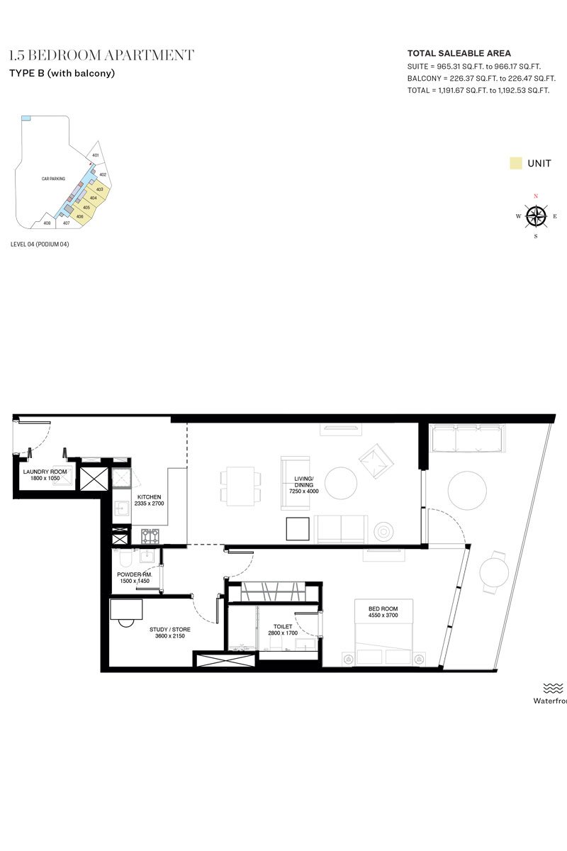 1 Bedroom | - | 1.5 Bedroom, Type B (With Balcony) | 1192.53 Sq Ft | Apartment |
