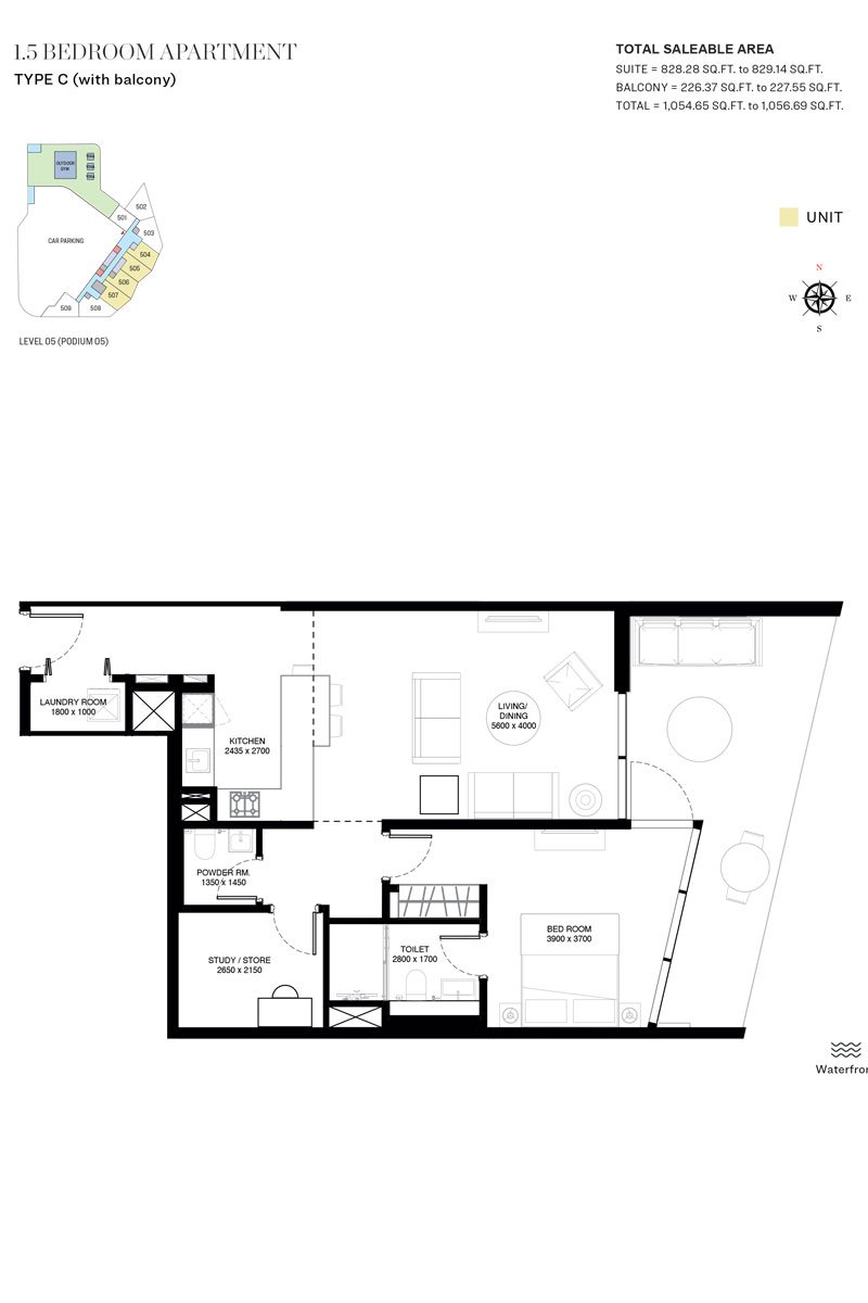 1 Bedroom | - | 1.5 Bedroom, Type C (With Balcony) | 1056.69 Sq Ft | Apartment |