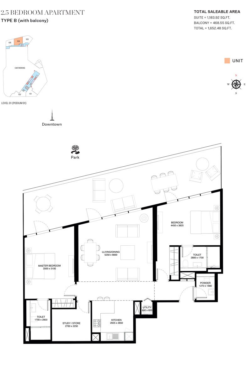 2 Bedroom | - | 2.5 Bedroom, Type B (With Balcony) | 1652.48 Sq Ft | Apartment |