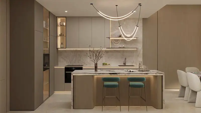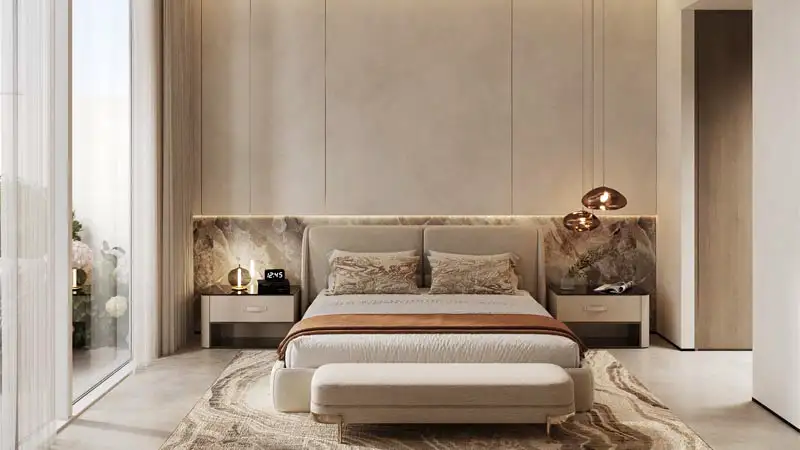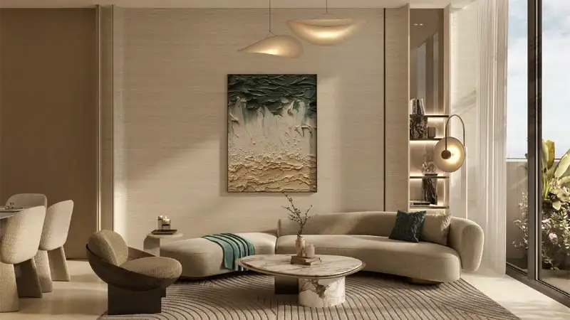 Wellington Ocean Walk at Dubai Islands is an emerging residential development by Wellington Developments, featuring elegantly designed 1 to 3-bedroom apartments and duplexes. This low-rise, contemporary architectural gem is situated along the picturesque seafront of a vibrant island. It offers breathtaking views of the urban landscape and the lush, modern suburbs, creating a stunning backdrop of serene ocean vistas. Experience a lifestyle where each day begins with the soothing sounds of the tides, inviting leisurely strolls along the shoreline. The surrounding area is filled with charm and vibrancy, boasting sandy beaches, fresh markets, world-class hotels and resorts, and much more. The building comprises two podiums and eight floors, topped with a rooftop zone, all enveloped in lush greenery that enhances its modern aesthetic. The striking glass facade allows natural light and fresh air to permeate the living and communal spaces, while balconies adorned with plants provide a seamless connection to the outdoors. The open podium and rooftop area offer a range of lifestyle amenities, easily accessible from every residence. The design reflects coastal elegance, and the entrance lobby leaves a lasting impression, featuring a centerpiece tree set in a tranquil green environment. The seating area creates a welcoming atmosphere with exquisite lighting, sleek finishes, and rich, warm tones that foster a calming ambiance. The complex includes a total of 79 residences, with 36 one-bedroom units, 32 two-bedroom units, and 11 three-bedroom duplexes. Each home is characterized by spacious living rooms that flow into dining areas, enhanced by floor-to-ceiling windows that flood the space with natural light and showcase stunning views. The open kitchens are designed with clean lines and a minimalist aesthetic, featuring bespoke lighting, stylish cabinets, neutral earthy color palettes, and convenient access to seating areas and other rooms. Each unit includes generously sized balconies with greenery, creating a harmonious blend of sea, nature, and personal space. Selected units also offer added features such as a jacuzzi or study room to cater to the diverse needs and preferences of residents.
