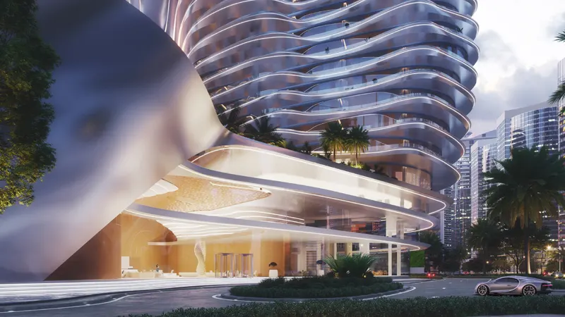 Bugatti Residences at Business Bay represents the latest architectural achievement by Binghatti Developers, offering opulent 2, 3, and 4-bedroom Sky Mansions and Penthouses. This exclusive 43-storey structure showcases expert craftsmanship and is inspired by the heritage of the renowned French luxury brand, positioning it as a premier destination in Dubai. Drawing influence from the legendary Bugatti hyper sports cars, these residences promise an extraordinary blend of innovative design, automotive artistry, and top-tier amenities. This luxury oasis in Dubai reflects the beauty of nature, with Riviera mansions named after prestigious locations such as Cannes, St. Tropez, and Monaco. Comprising an ultra-luxury collection of 182 units within a multi-storey development, the project features 171 Riviera-inspired mansions and 11 limited-edition sky mansion penthouses, complete with rooftop luxury services. The development embodies the perfect synergy of engineering excellence and refined aesthetics. Inspired by Bugatti's iconic vehicles, the residences radiate dynamism, elegance, and impressive strength. With sleek lines, aerodynamic shapes, luxurious materials, and meticulous attention to detail, every element of the residences reflects a commitment to exceptional craftsmanship and innovation. Residents will enjoy an unparalleled living experience where indulgence and comfort harmoniously coexist. Each residence boasts spacious interiors with panoramic views of the Dubai skyline, creating an immersive atmosphere that seamlessly integrates the exterior with the thoughtfully designed interiors. State-of-the-art amenities, including a Riviera-inspired beach, private pool, fitness center, spa, and concierge services, will cater to every resident's needs, ensuring a lifestyle of the highest luxury and convenience. Highlights of this exceptional offering include exclusive 2, 3, and 4-bedroom Mansions and Penthouses, a luxury lifestyle inspired by the Bugatti brand, cutting-edge design paired with world-class amenities, attractive and flexible payment plans, and a distinctive architectural innovation that embodies Riviera luxury living, all within a high-rise façade reminiscent of legendary Bugatti hyper sports cars.