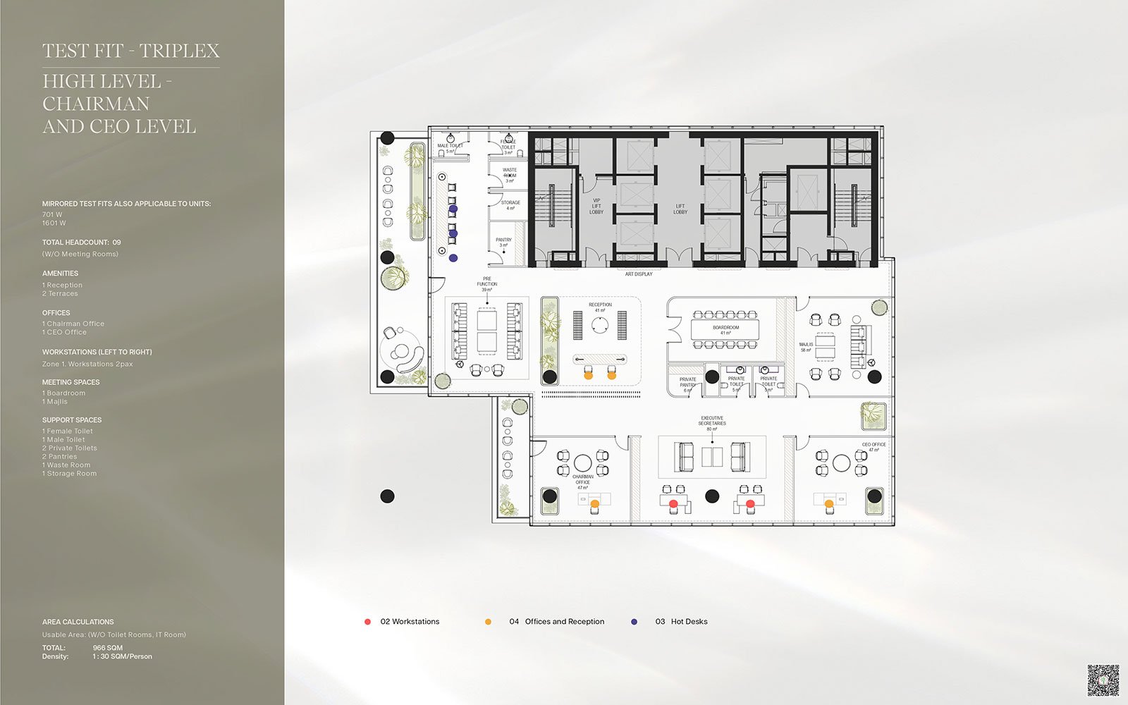 TEST FIT - TRIPLEX - High Level - Chairman and Ceo Level 966.00 Sq Mtr Office Space