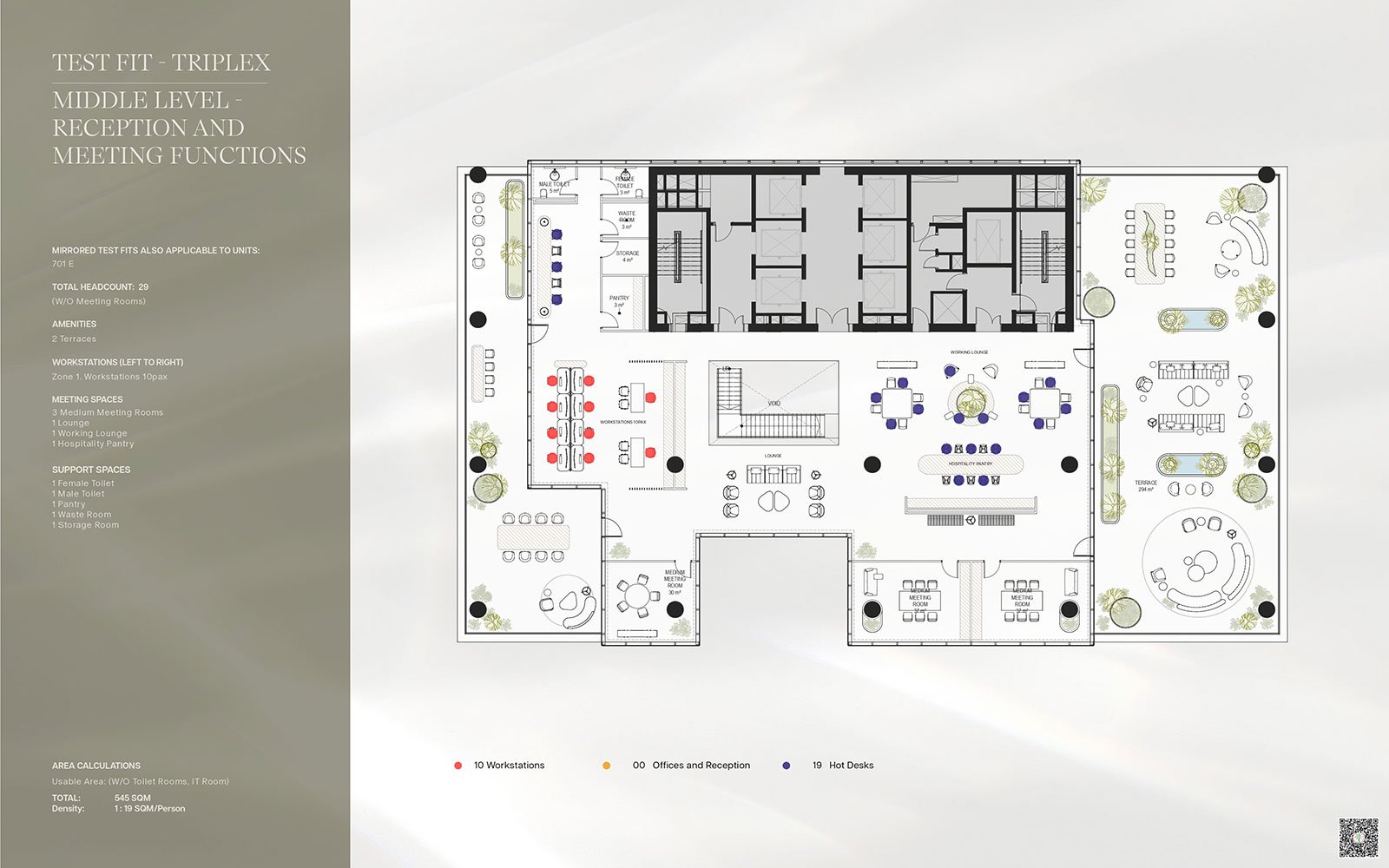 TEST FIT - TRIPLEX - Middle Level - Reception and Meeting Functions 545.00 Sq Mtr Office Space