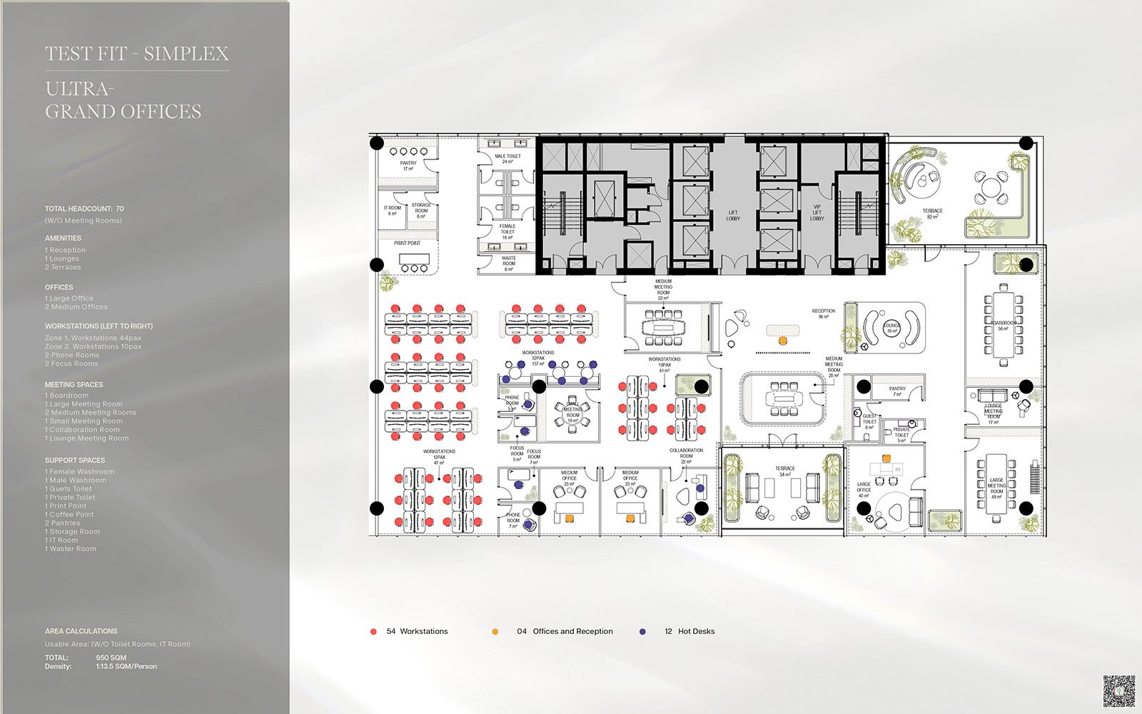 TEST FIT - SIMPLEX - Ultra Grand Offices 950.00 Sq Mtr Office Space