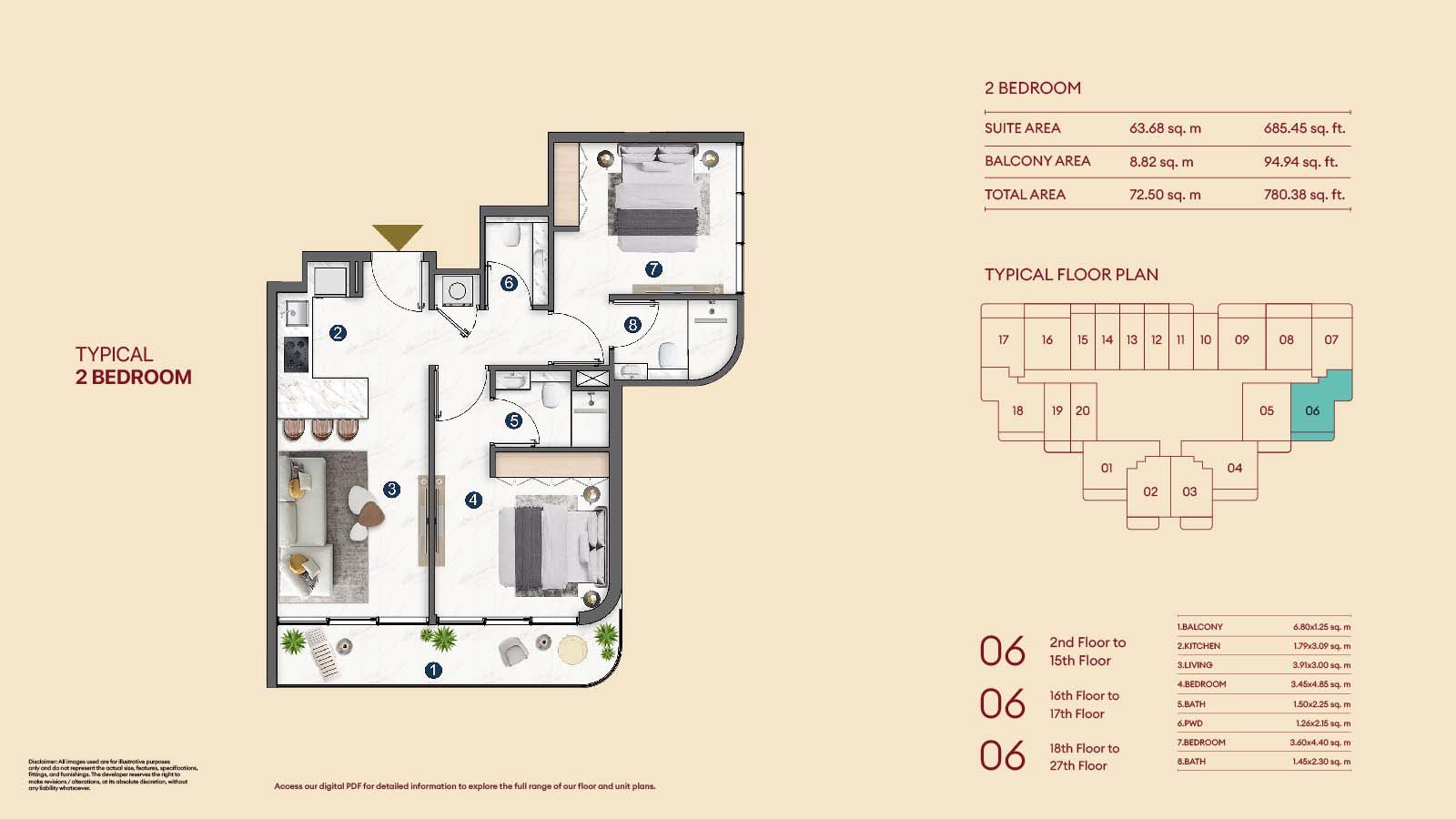 2nd-27th Floors | - | 2 Bedroom | 780.38 Sq Ft | Retail Space |