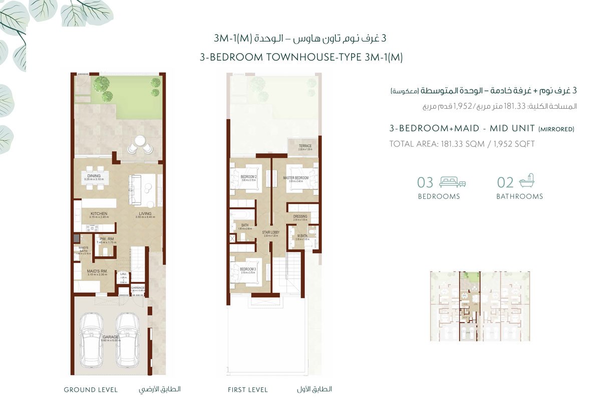 3 Bedroom | - | Type 3M-1(M) | 1952.00 Sq Ft | Townhouse |