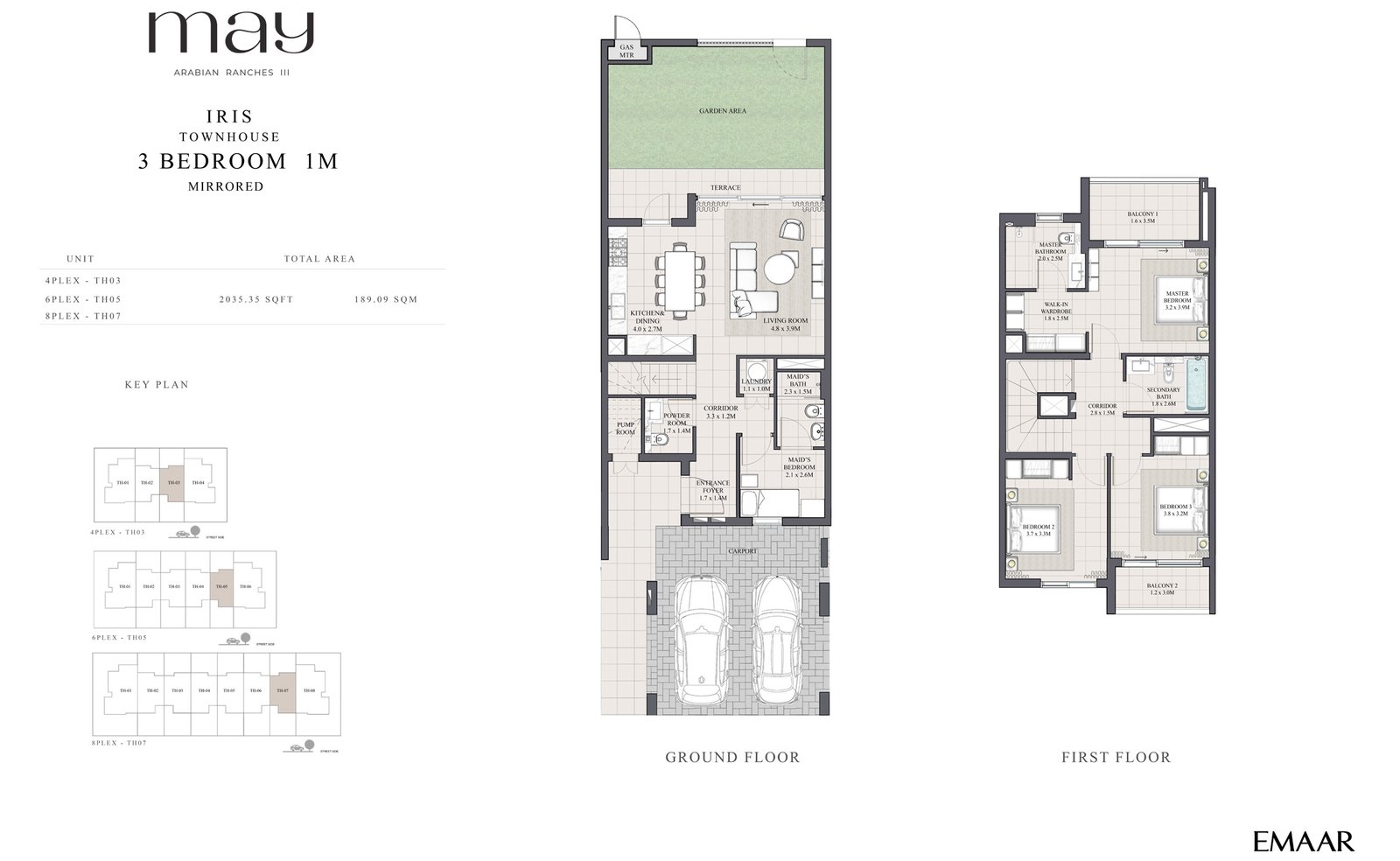 3 Bedroom | - | 3 Bedroom - 1M | 2035.35 Sq Ft | Townhouse |