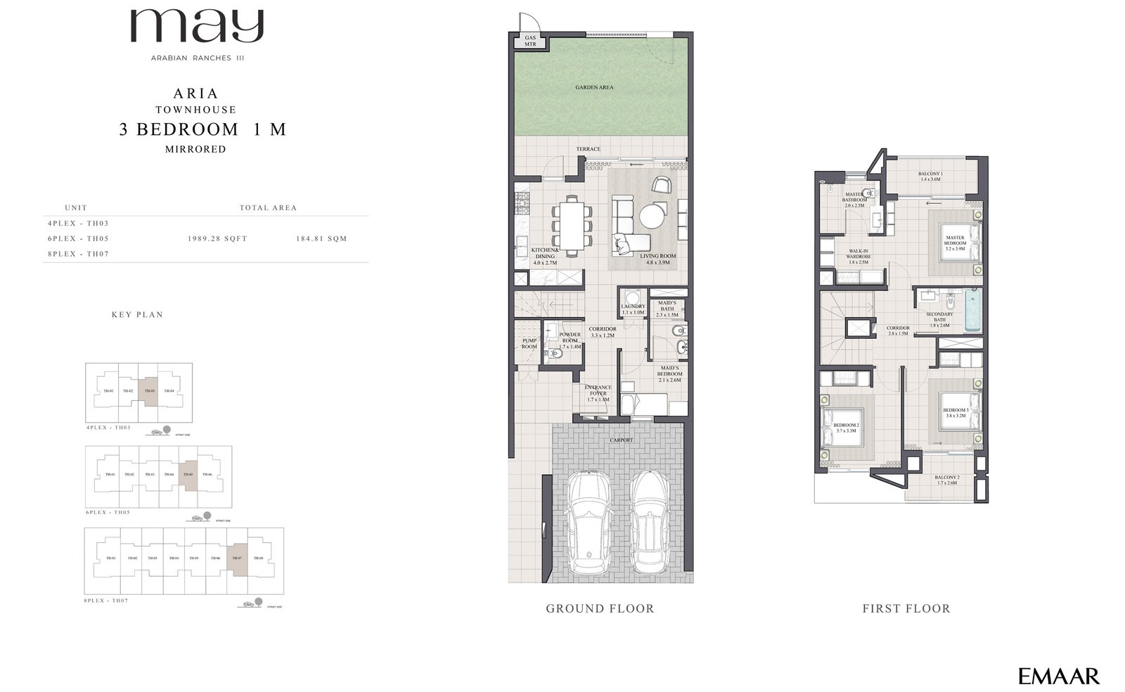 3 Bedroom | - | 3 Bedroom - 1M | 1989.28 Sq Ft | Townhouse |