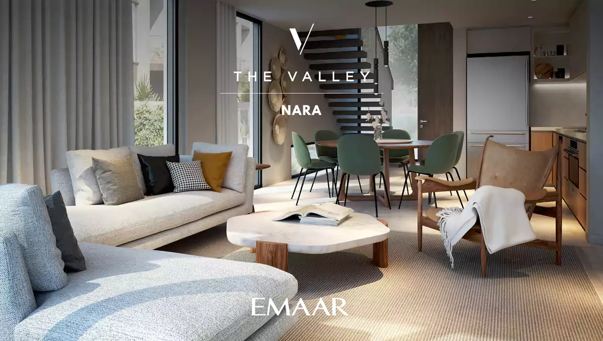 NARA at The Valley represents the latest residential offering from Emaar Properties, featuring exquisite 3 and 4 bedroom townhouses conveniently located near Al Ain Road in Dubai. These upscale townhouses elevate the concepts of luxury and leisure, setting a new standard within the valley community. Each home is thoughtfully designed and equipped with a range of amenities that promote a healthy lifestyle, accompanied by enticing offers for those looking to settle in one of Dubai's most attractive areas. The prime location near Al Ain Road ensures effortless accessibility and connectivity to major road networks, simplifying daily commutes. Residents will enjoy proximity to world-class shopping, fine dining, and the exquisite hospitality that Dubai is renowned for. For those who embrace an active outdoor lifestyle, this development is an ideal choice, offering various lifestyle facilities including a sports village and a pavilion designed for relaxation and enjoyment. Additionally, these beautifully crafted townhouses exude a classic contemporary elegance, providing a comfortable and inviting sanctuary to call home. The design reflects an exceptional level of sophistication, with stylish interiors that enhance the overall aesthetic appeal. Key highlights of this newly launched development include a selection of 3 and 4 bedroom townhouses, a prime location near Al Ain Road, attractive payment plans, a family-friendly gated community, and a serene environment surrounded by lush green parks.