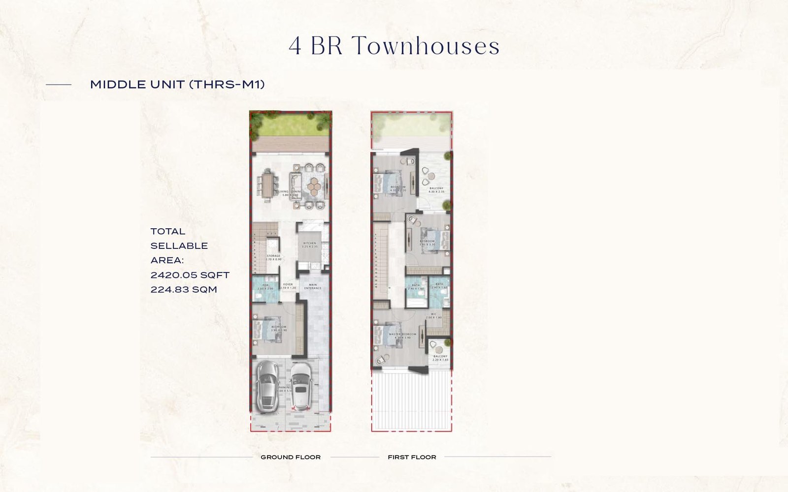 4 Bedroom | - | Middle Unit (THRS-M1) | 2420.05Ā Sq Ft | Townhouse |