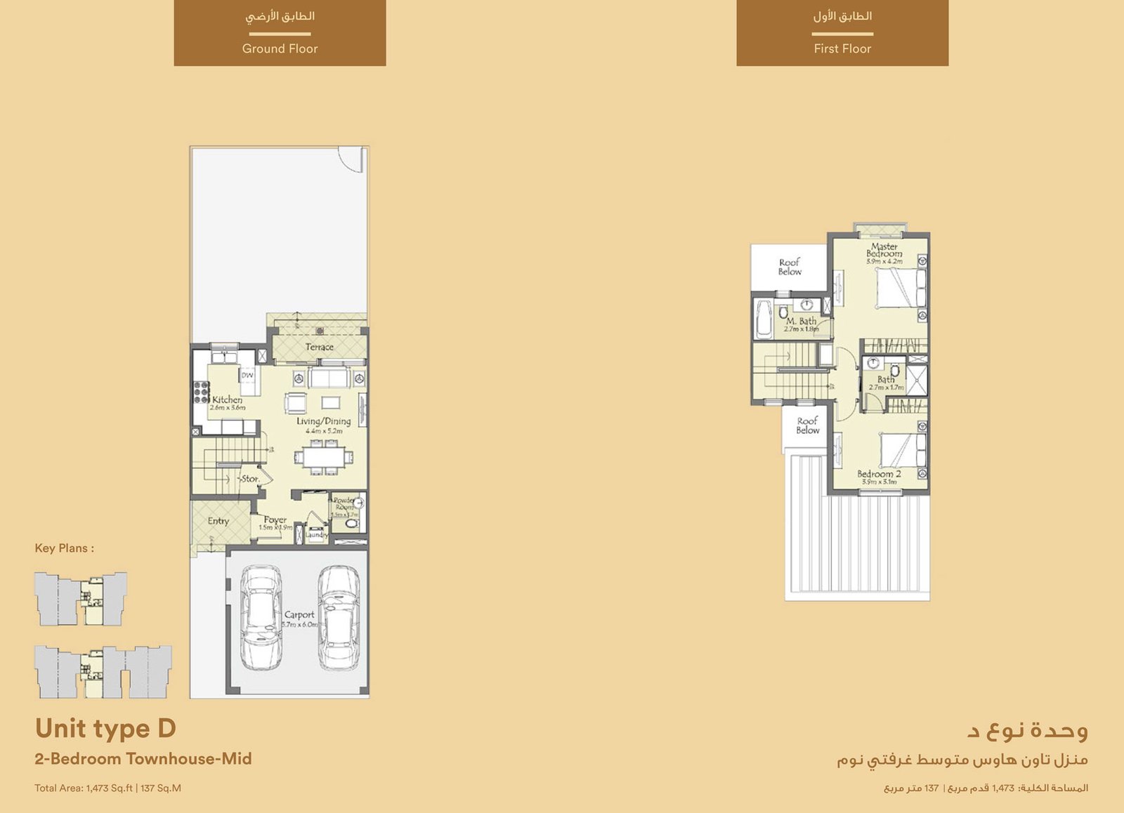 2 Bedrooms | - | 2 BR Unit Type-D | 1473.00 Sq Ft | Townhouse |