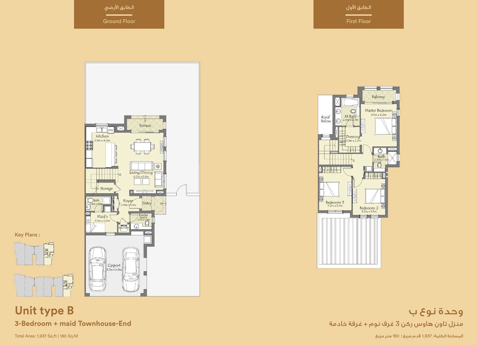 3 Bedrooms | - | 3 BR Unit Type-B | 1937.00 Sq Ft | Townhouse |