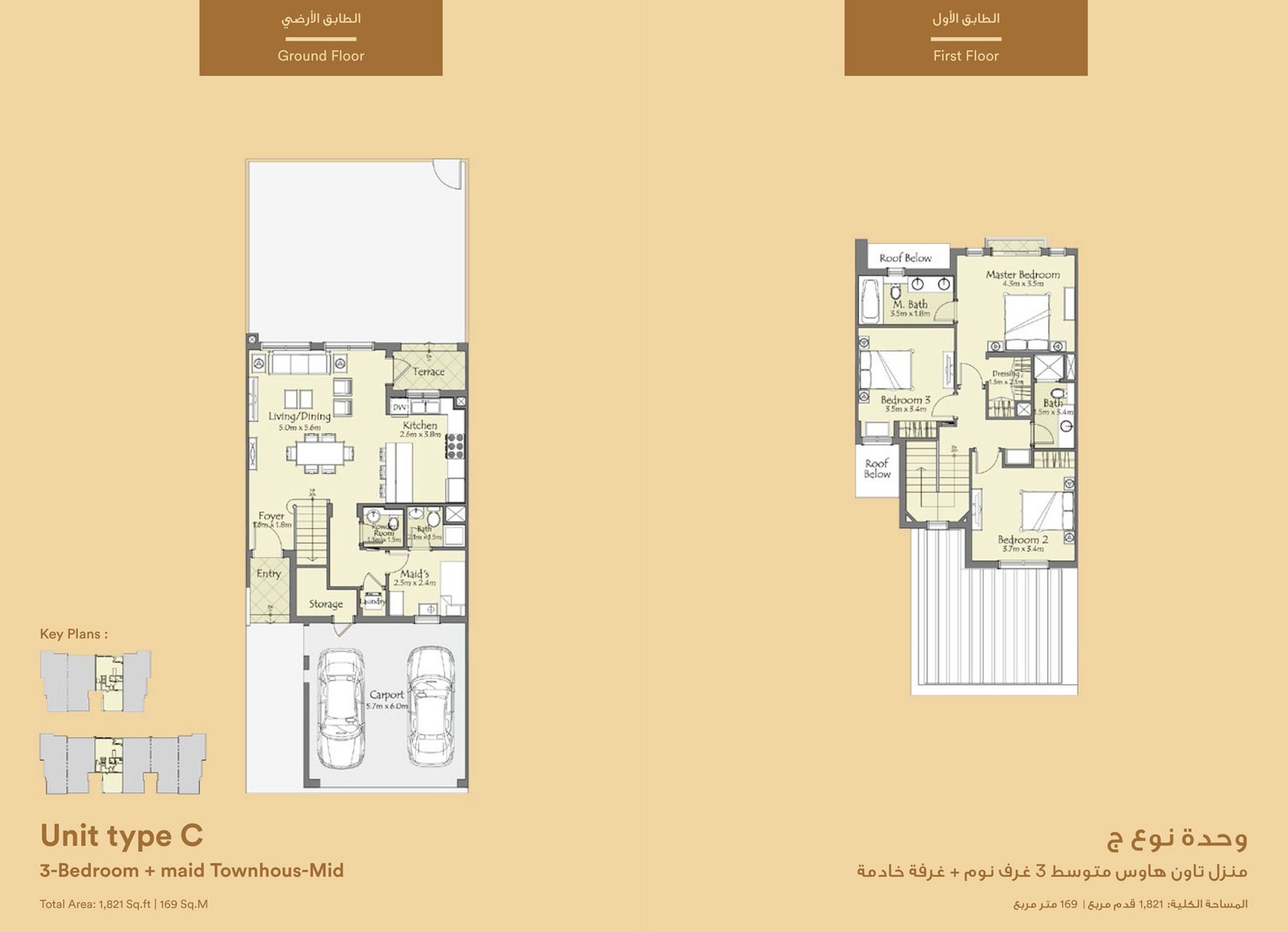 3 Bedrooms | - | 3 BR Unit Type-C | 1821.00 Sq Ft | Townhouse |