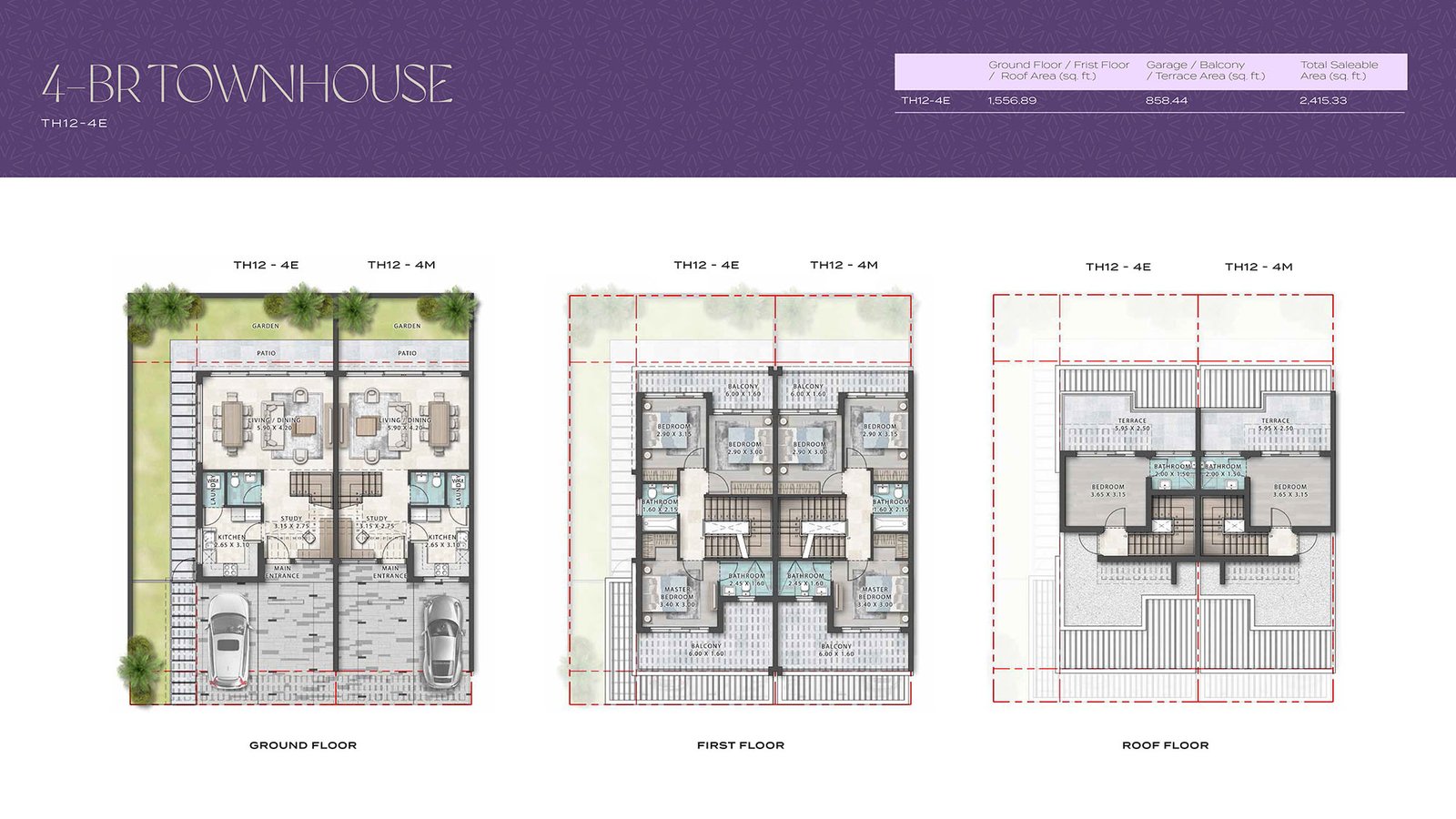 4 Bedroom | - | TH12-4E | 2415.33 Sq Ft | Townhouse |