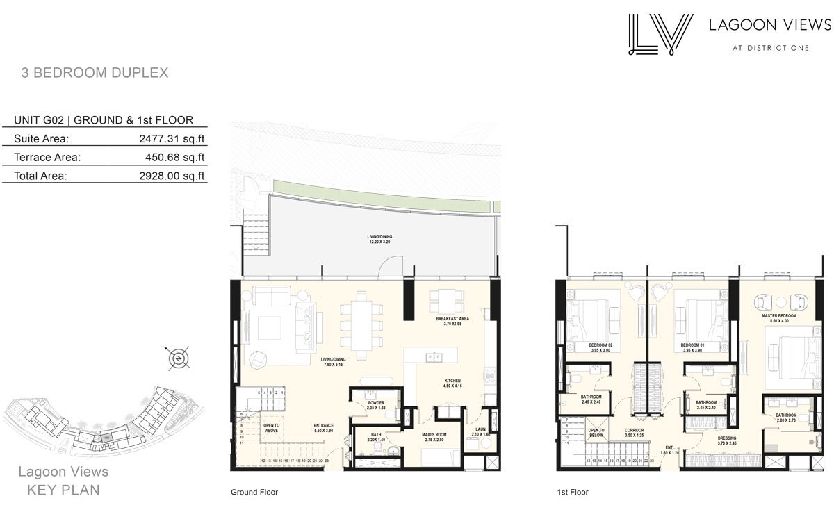 3 Bedroom | - | Duplex Unit G02, Ground & 1st Floor | 2928.00 Sq Ft | Villa |