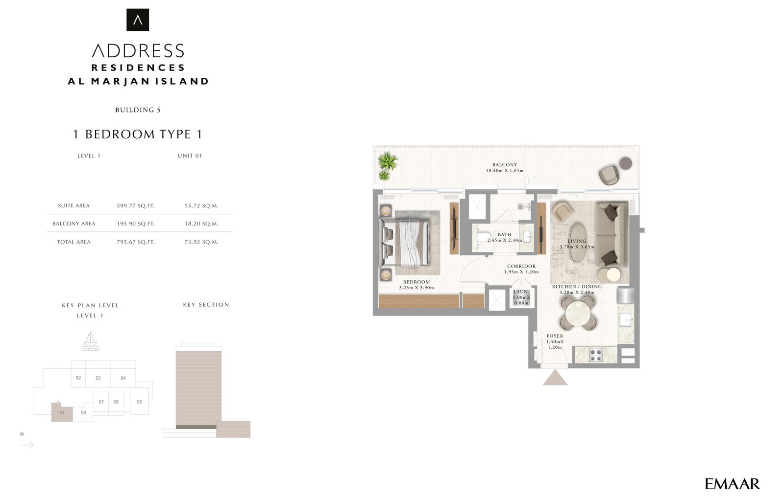 Building 5 | - | Type 1, Unit 1, Level 1 | 795.67 Sq Ft | Apartment |
