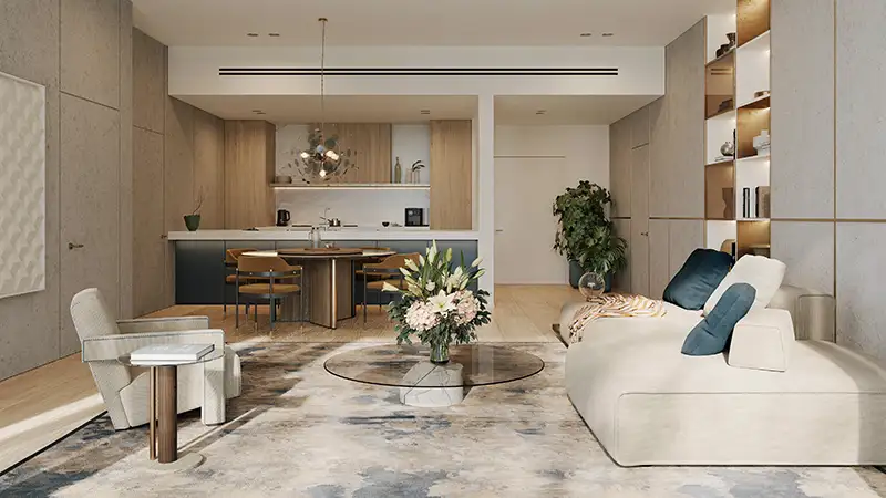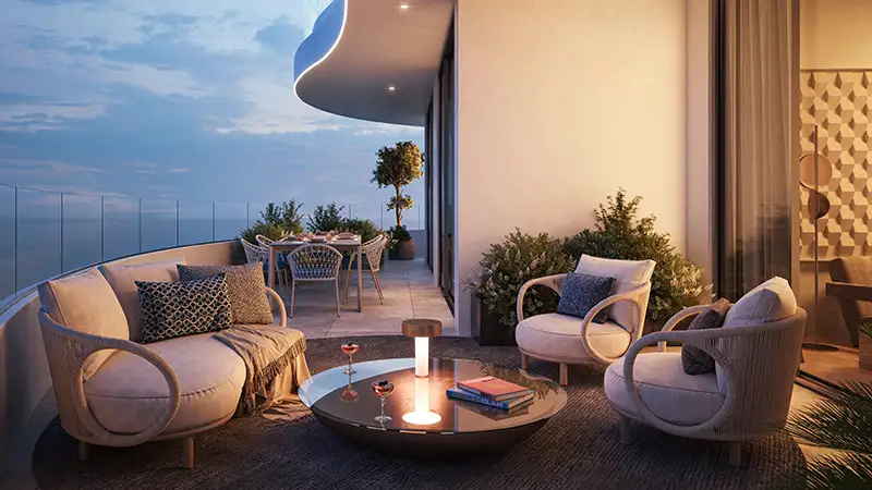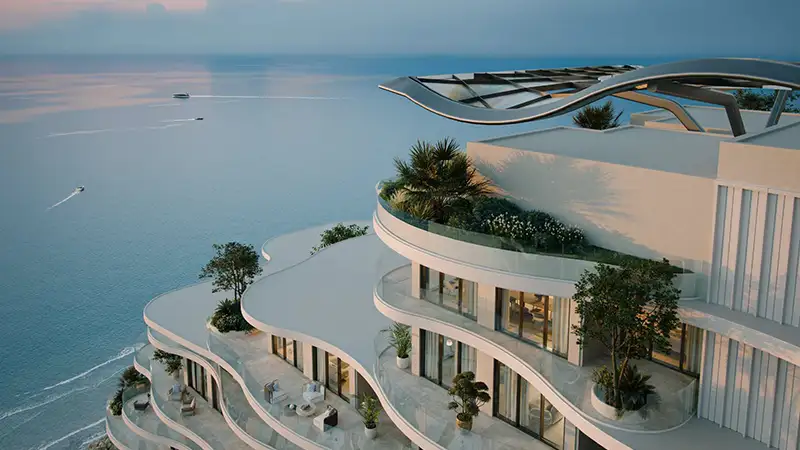 Miraggio by Source of Fate Properties stands as an architectural landmark on Al Marjan Island, featuring a range of seafront studios to three-bedroom apartments. This rising sanctuary embodies a meticulous blend of artistic creativity, natural beauty, and timeless design. The building's organic curves, crafted from pristine white materials, along with its open terraces and cascading glass exterior, reflect the rhythm of ocean waves. Surrounded by lush greenery and bordered by tree-lined waterfront promenades, this development gracefully ascends from a landscaped podium, thoughtfully integrating greenery throughout its surroundings. Situated along the coast of Ras Al Khaimah, this artificial island is poised to become a premier destination for entertainment, hospitality, and luxury. Each residence has been designed to harmoniously combine modern aesthetics and practicality, featuring open, unique layouts that evoke tranquility through calming tones and high-quality finishes. Floor-to-ceiling windows invite natural light into each space, complemented by natural stone, exquisite finishes, and customized textures. Every detail fosters a serene ambiance, perfect for relaxation and celebrations with loved ones. Living areas and bedrooms are enhanced by private terraces, seamlessly connecting indoor and outdoor spaces while offering breathtaking views of the tranquil sea at dusk and the golden horizon. With stunning vistas of the endless ocean, the evolving landscape of the island, and the expansive coastline of the Emirates, this sculptural masterpiece is positioned at the water's edge. The design prioritizes human experience and harmonizes with the natural environment, allowing residents to enjoy both luxurious resort-style living and the peaceful allure of the ocean. Emphasizing biophilic design principles, all balconies and terraces are thoughtfully landscaped, while the podium features a variety of amenities, communal spaces, and lush settings. The cascading architectural forms descend gracefully from the top, drawing the eye toward the scenic promenade and the sea. Here, you will experience a refined lifestyle, where every space is intentionally designed to enhance well-being and inspire a vibrant community life. Upon arrival, residents are greeted by a grand lobby that exudes luxury with its opulent details and inviting seating areas. Retail spaces and parking facilities are conveniently located on the ground floor at the rear. Embrace a leisurely lifestyle by immersing yourself in the infinity pool, which boasts captivating views of the Gulf, or rejuvenate in the dedicated yoga room. Families will find ample opportunities for relaxation and engagement, with features such as a family lawn, children's pool, water play area, pocket seating, landscaped buffer, pool bar, and water features. Additional amenities promoting an active lifestyle include a gym terrace, jogging track, activity lawn, and a scenic waterfront promenade for leisurely strolls. This development offers a selection of premium and luxurious residences, including studios, one, two, and three-bedroom apartments. The interiors showcase aesthetic and neutral tones, elegant yet functional designs, natural finishes, private terraces, and expansive floor-to-ceiling windows framing panoramic views of the ocean, waterfront promenade, verdant landscaping, and the island's evolving scenery. The architecture is visually striking, featuring soft curves, cascading forms, and high-quality white materials, all complemented by an open design and glass windows. Residents enjoy world-class amenities, including an infinity pool, water features, yoga room, gym, retail spaces, grand entrance lobby, gym terraces, and jogging track, along with numerous family-friendly options such as a family lawn, pocket seating areas, padel court, landscaped buffers, pool bar, and activity lawn.