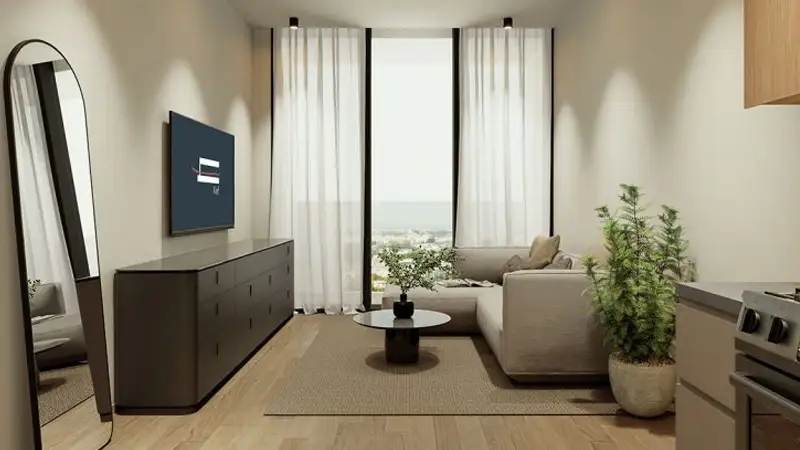 Al Mamsha Hamsa 2 at Al Mamsha Raseel represents the second leisure destination developed by the esteemed Alef Group, emerging in Sharjah with a variety of waterfront apartments featuring one, two, and three bedrooms. This innovative low-rise design stands out with a harmonious blend of modern aesthetics and natural surroundings, providing residents with more than just a place to live; it offers a true architectural masterpiece. Positioned centrally within the city, the project integrates contemporary architecture with natural elements, alongside premier leisure activities that are unparalleled. The buildings exhibit a unique façade characterized by distinct horizontal lines and recessed balconies, complemented by textured surfaces that set them apart from conventional structures. Designed with an elevated podium to mitigate street noise, the development welcomes pedestrians with serene spaces, while strategically placed green areas offer private relaxation spots within the community. The use of performance glass and natural materials, paired with earthy tones, enhances thermal efficiency and ensures lasting visual appeal. The master planning process carefully considered microclimate influences, wind patterns, and sun positioning, resulting in a comfortable living environment year-round. Architectural features such as arcades, terraces, and tranquil water elements connect the development's heritage to contemporary design, reminding residents of the regional style. Each architectural detail contributes to a unique identity, skillfully merging traditional respect with modern innovation. The interior spaces are designed to be inviting, showcasing openness through the use of high-quality materials. The residences go beyond basic functionality, providing a sense of soul for their inhabitants with large windows that flood the rooms with natural light and elegant designs from floor to ceiling. This lifestyle complex seamlessly integrates convenience and comfort. The elevated podium offers sweeping views of the district, while water features and recreational pools provide a refreshing escape for daily life. The walkway becomes a captivating visual experience, enhanced by thoughtfully selected ambient lighting that complements the stunning views and cohesive design.