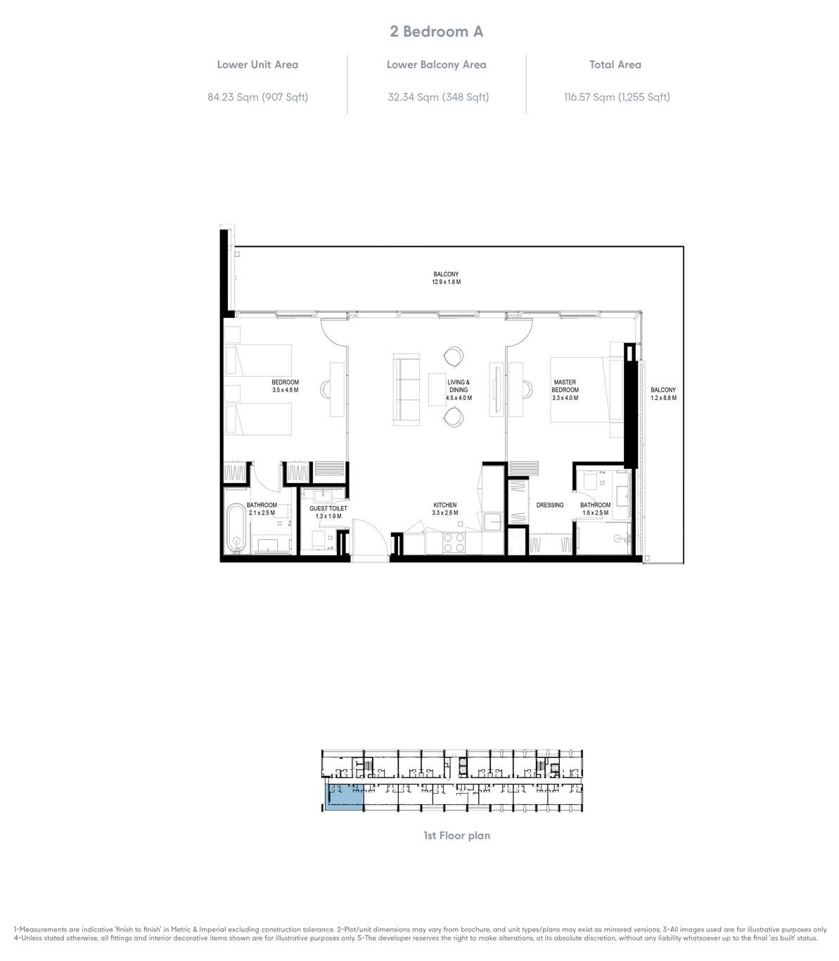 2 Bedroom | - | Type A | 1255.00 Sq Ft | Apartment |