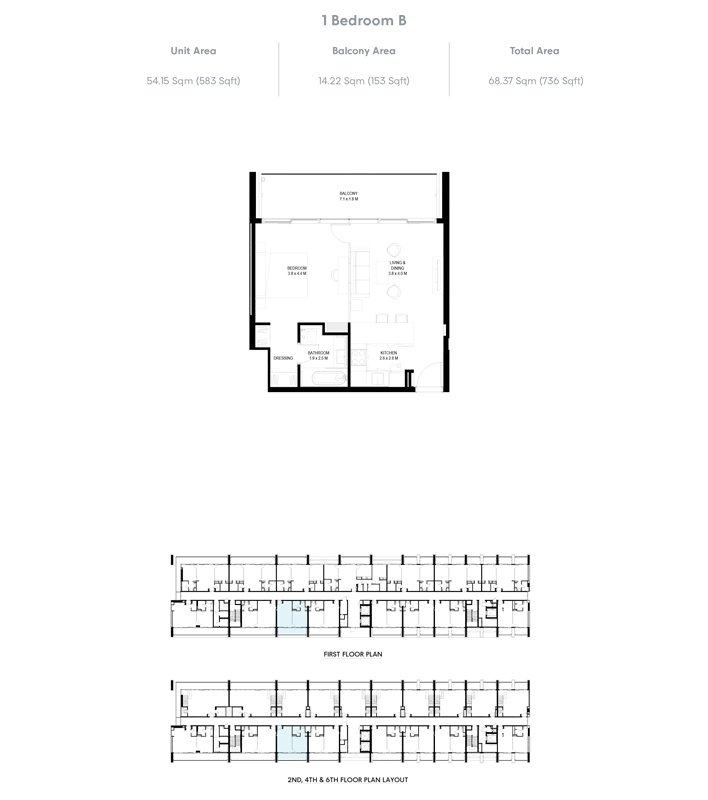 1 Bedroom | - | 1 Bedroom B | 736.00 Sq Ft | Apartment |