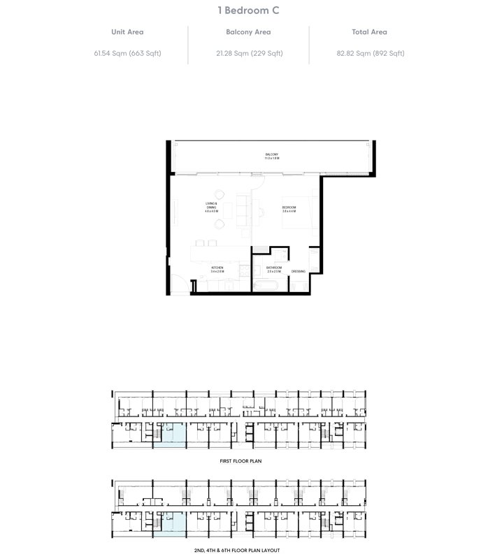 1 Bedroom | - | 1 Bedroom C | 892.00 Sq Ft | Apartment |