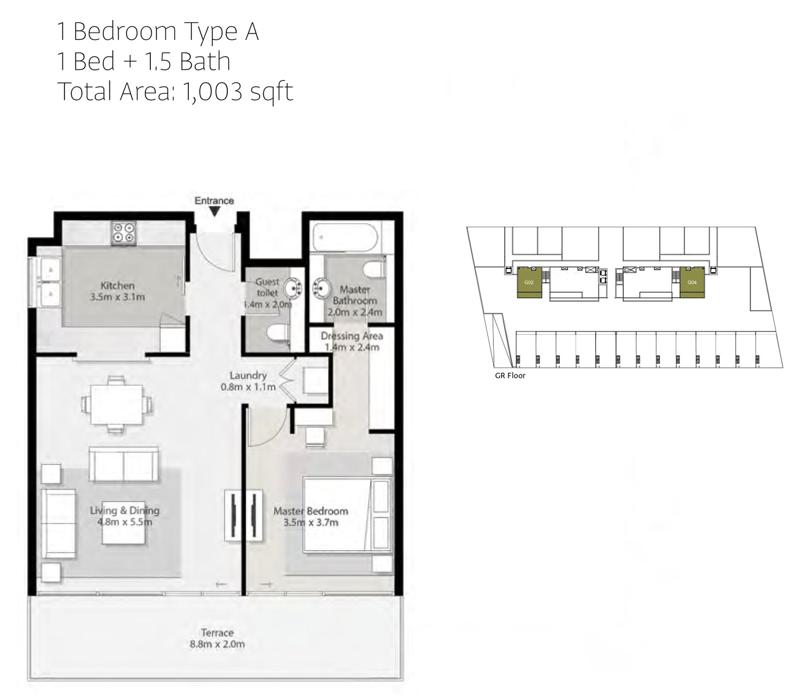 1 Bedroom | - | 1 Bed Type-A | 1003.00 Sq Ft | Apartment |