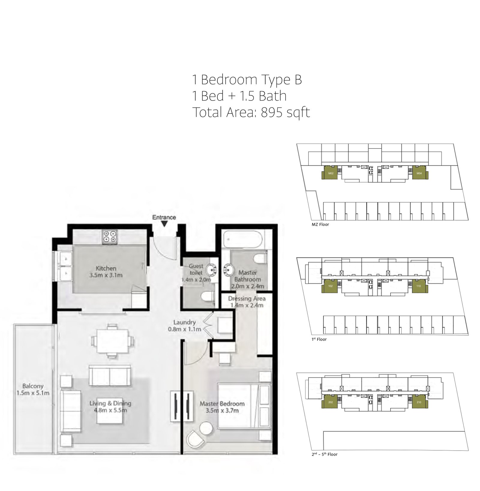 1 Bedroom | - | 1-Bed-Type-B | 895.00 Sq Ft | Apartment |