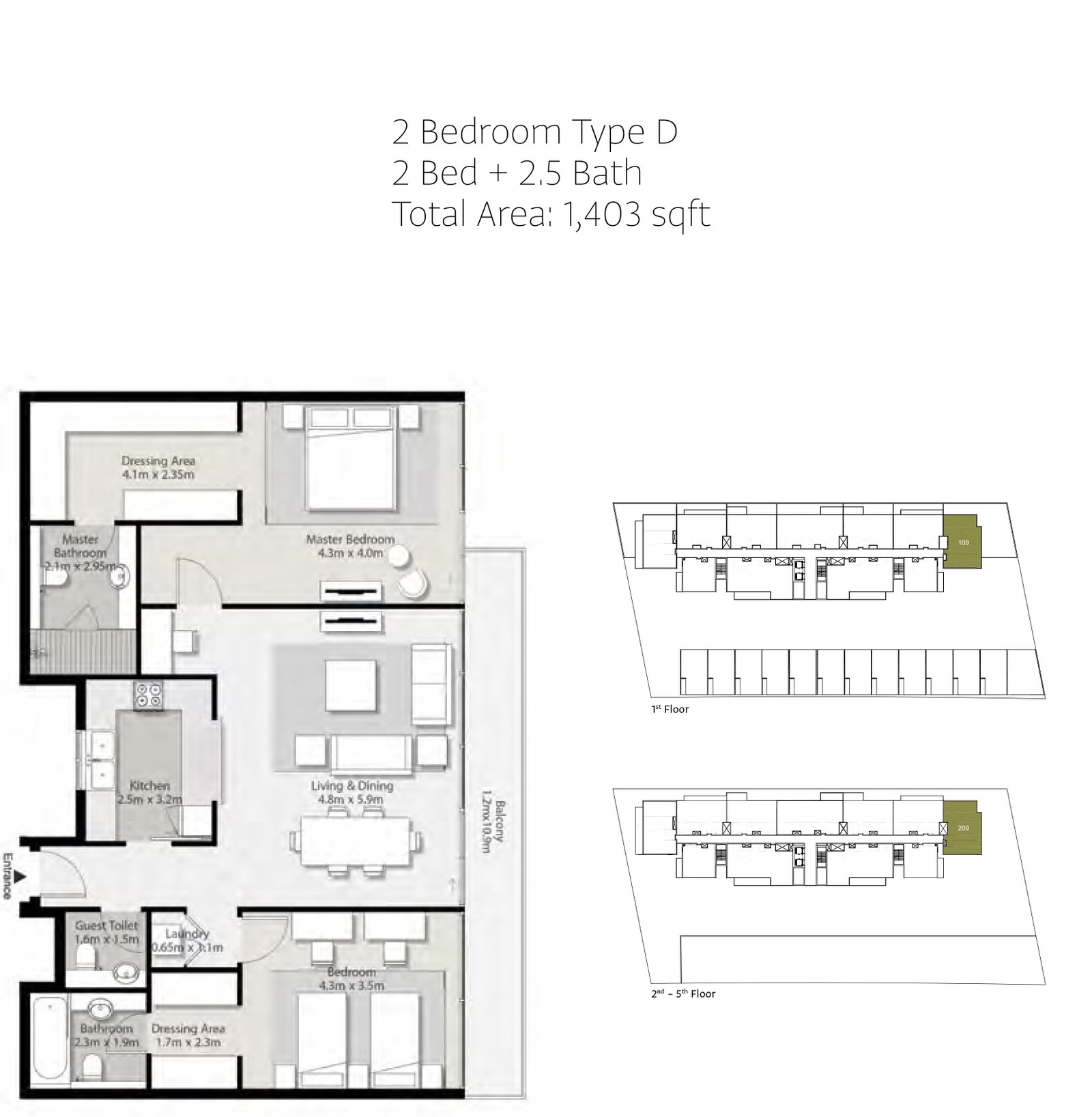 2 Bedrooms | - | 2-Bed-Type D | 1403.00 Sq Ft | Apartment |