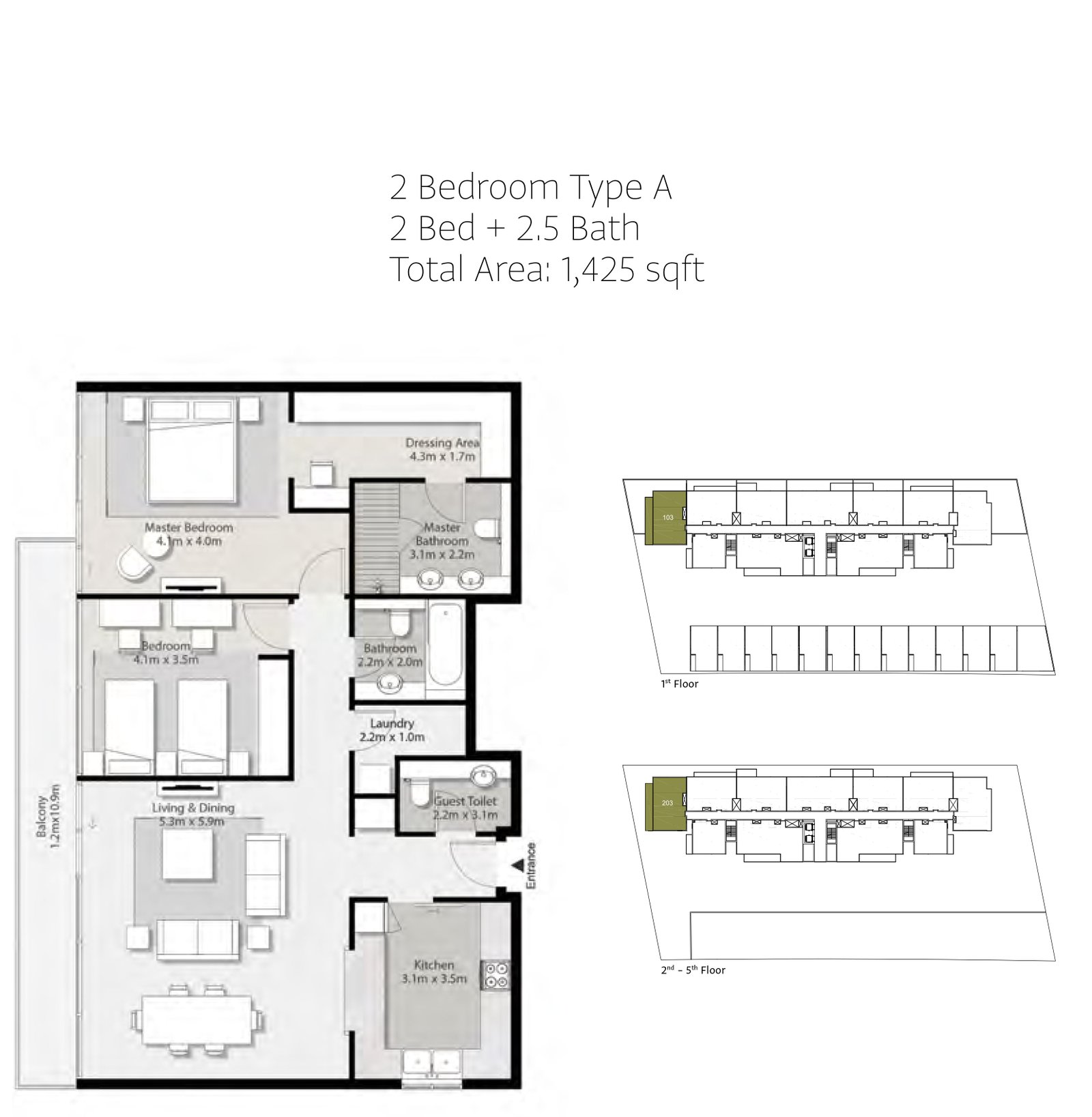 2 Bedrooms | - | 2-Bed-Type-A | 1425.00 Sq Ft | Apartment |