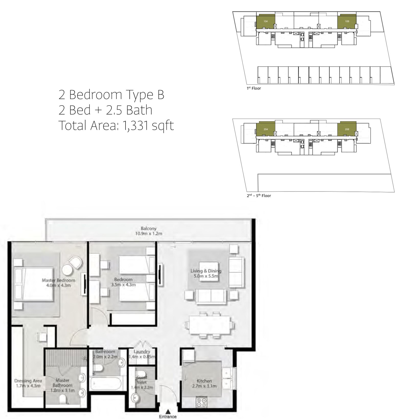 2 Bedrooms | - | 2-Bed-Type-B | 1331.00 Sq Ft | Apartment |