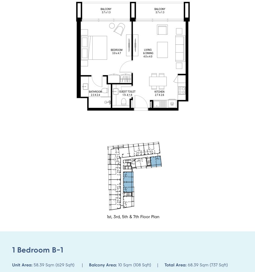 1 Bedroom | - | 1 Bedroom B-1 | 737.00 Sq Ft | Apartment |