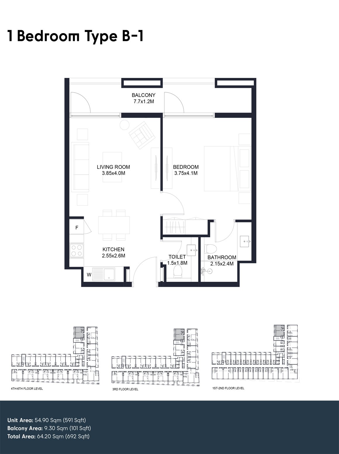 1 Bedroom | - | 1 Bd - Type B 1 - 692 sq ft | 692.00 Sq Ft | Apartment |