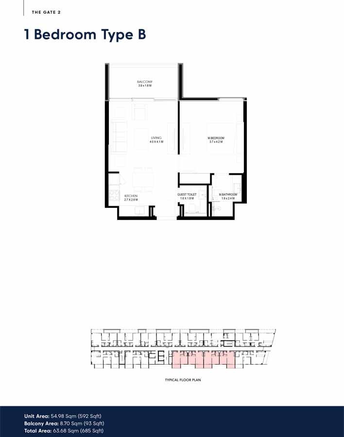 1 Bedroom | - | Type B | 685.00 Sq Ft | Apartment |