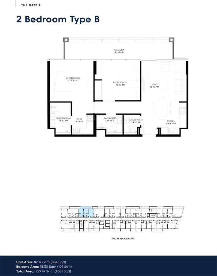 2 Bedroom | - | Type B | 1081.00 Sq Ft | Apartment |